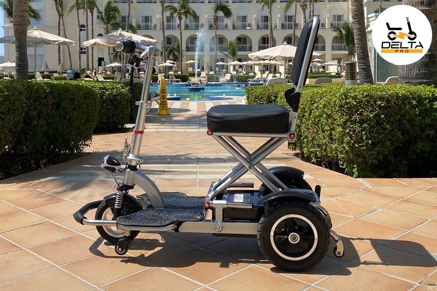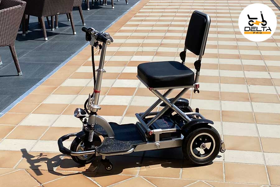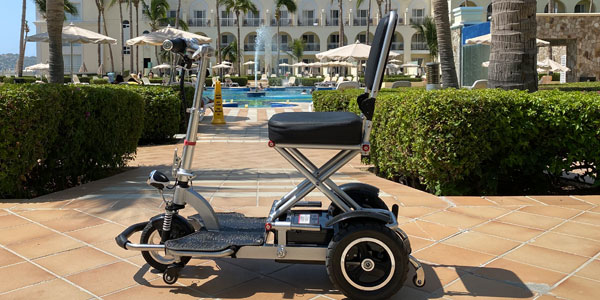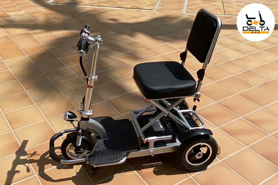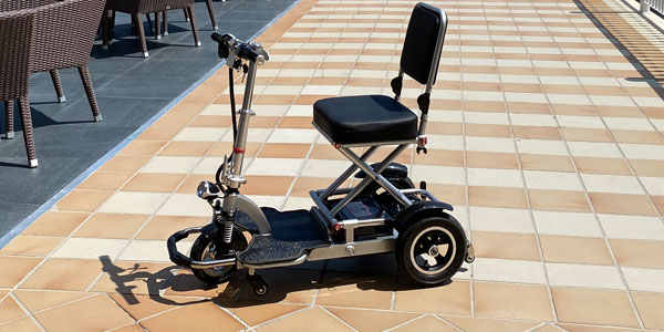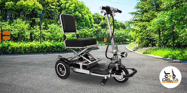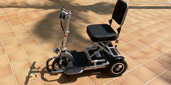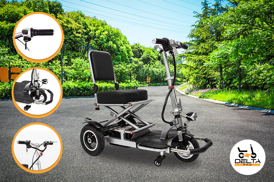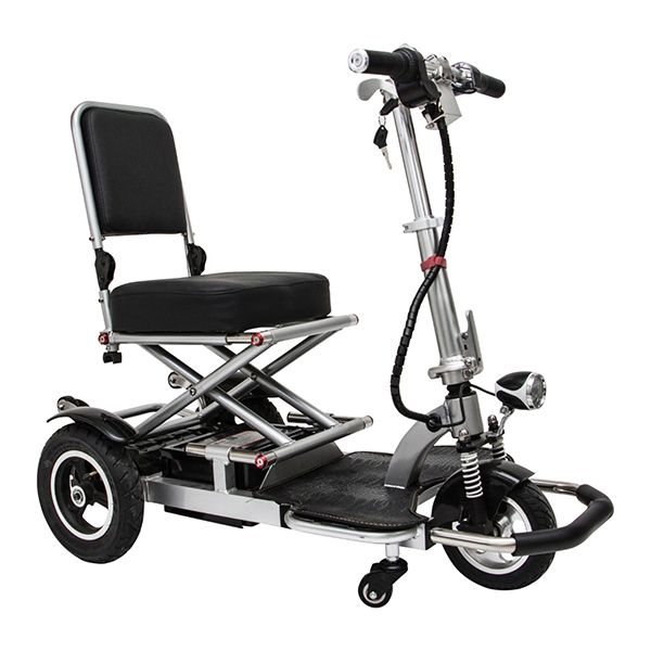 Silla de ruedas eléctrica plegable y ligera tipo scooter, plegable y ligera ideal para personas sin fuerza en las manos con movilidad reducida.